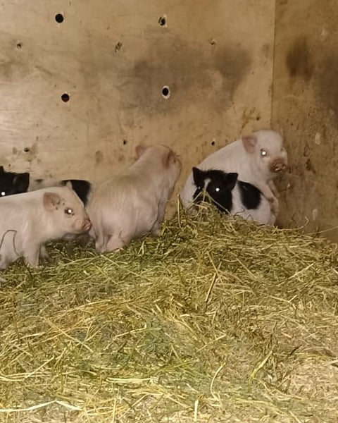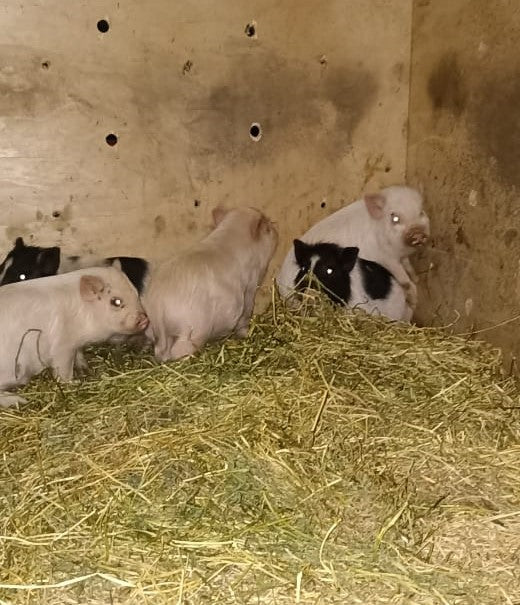Durante estos últimos años los han ido reproduciendo, y adquirimos nuestros primeros reproductores durante el año 2023. 4 hermosos Lechones, de 2 a 3 meses de edad. Actualmente, Sept 23, ya tienen 8 meses de edad.